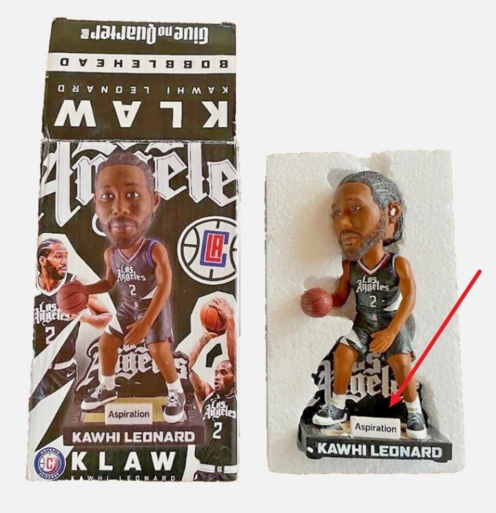 一位名叫chuck_555的网友从自己的收藏品中发现,快船官方曾经推出过与涉事公司Aspiration联名的莱昂纳德大头娃娃。